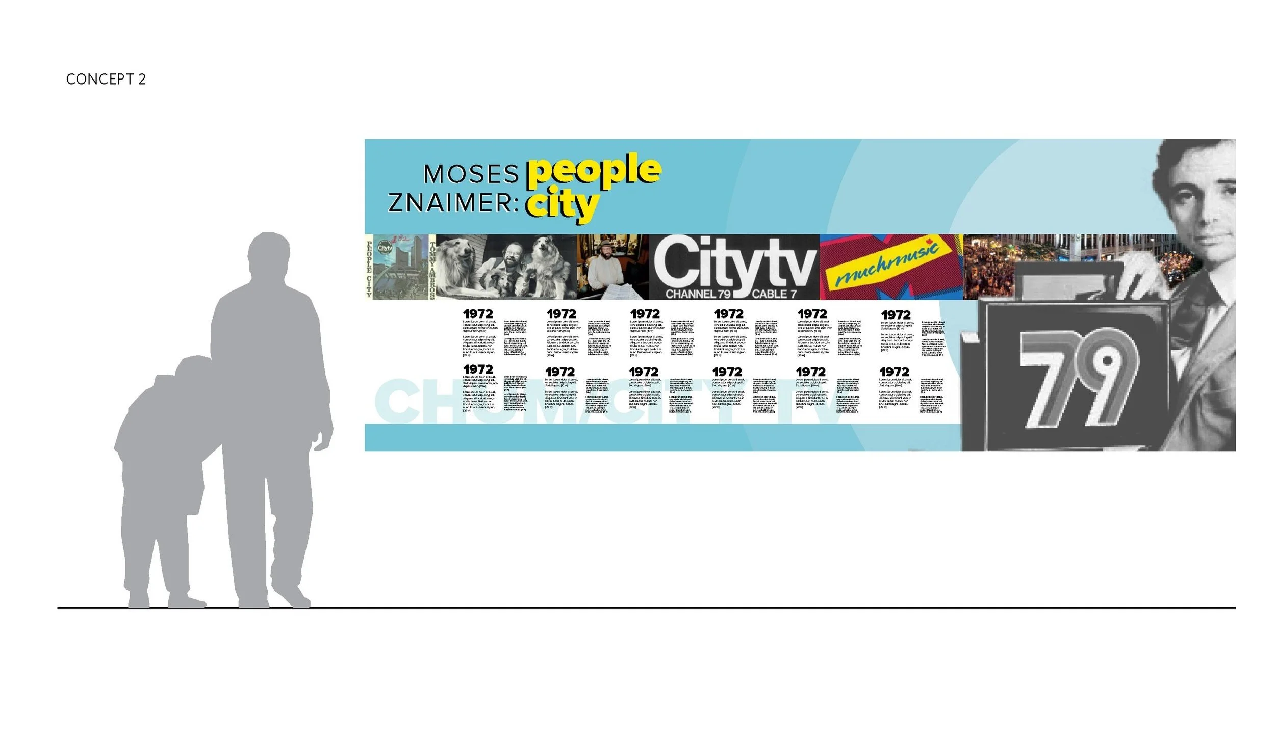 I designed a large-scale timeline on Moses Znaimer's prolific career and impact on Canadian and international media, for the Moses Znaimer Television Museum in Toronto, Canada.