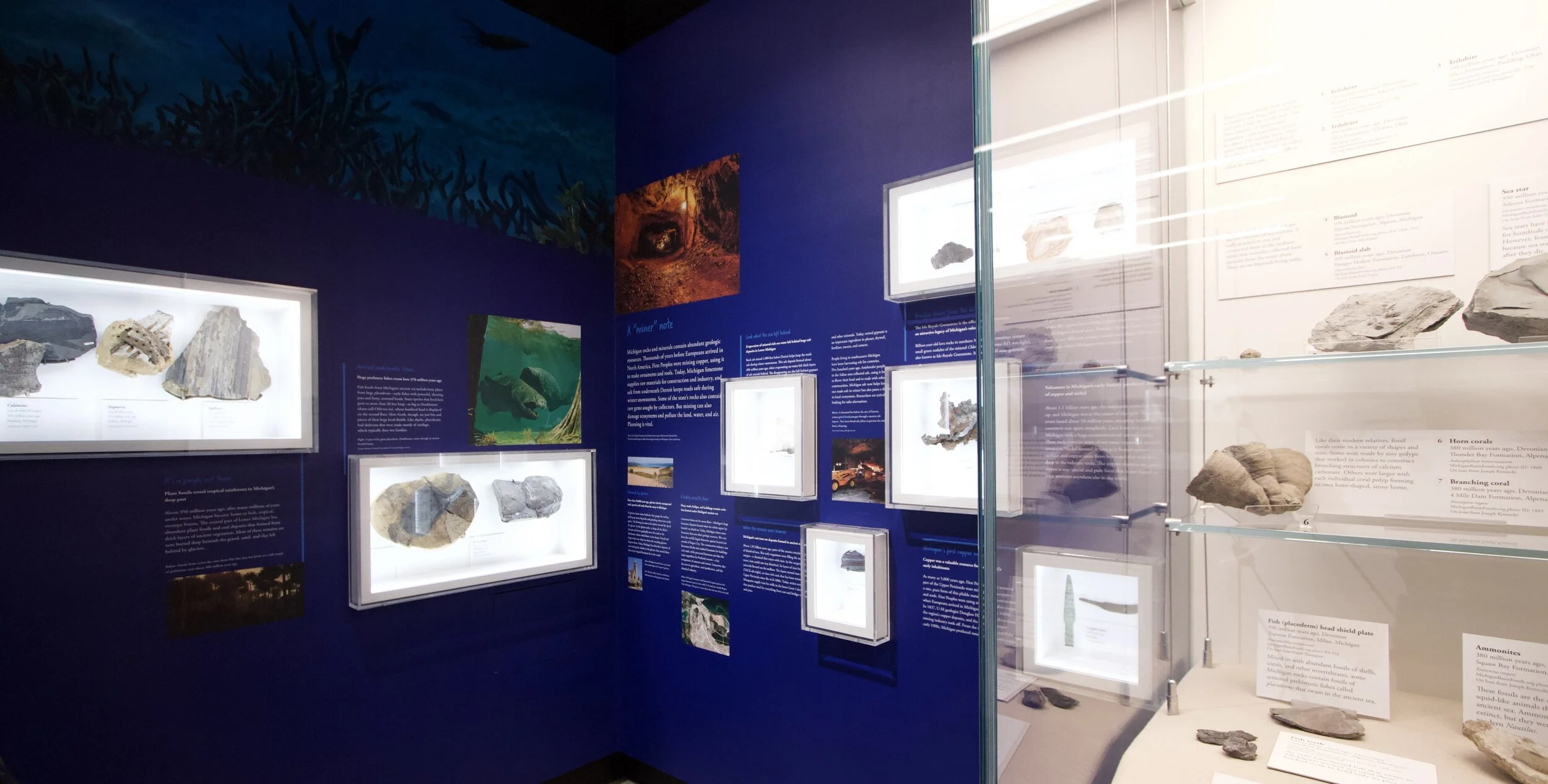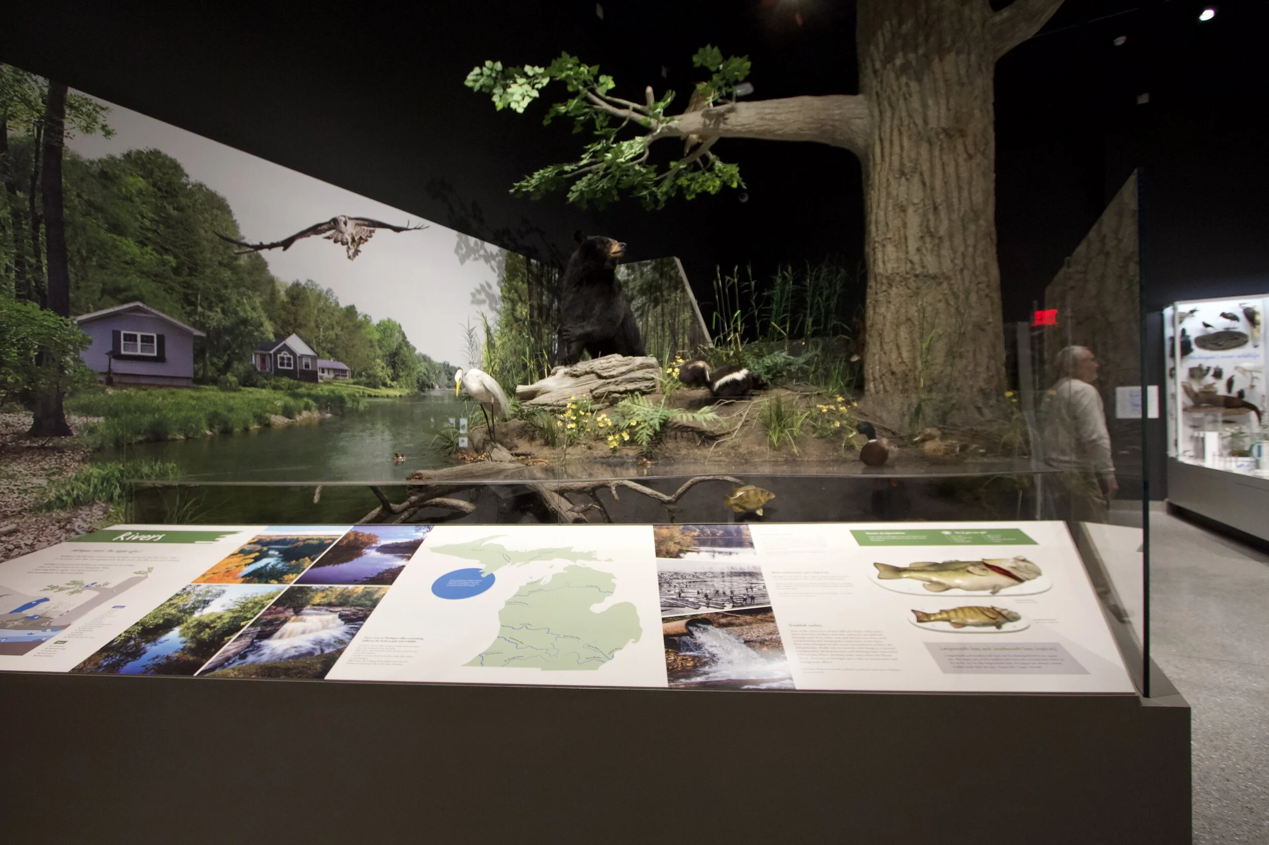 Exploring Michigan - This exhibit celebrates Michigan’s rich geological formations, awe-inspiring prehistoric life forms, and diverse ecosystems. Life-size dioramas and bright visual reading rails highlight Michigan’s varied habitats and wildlife.